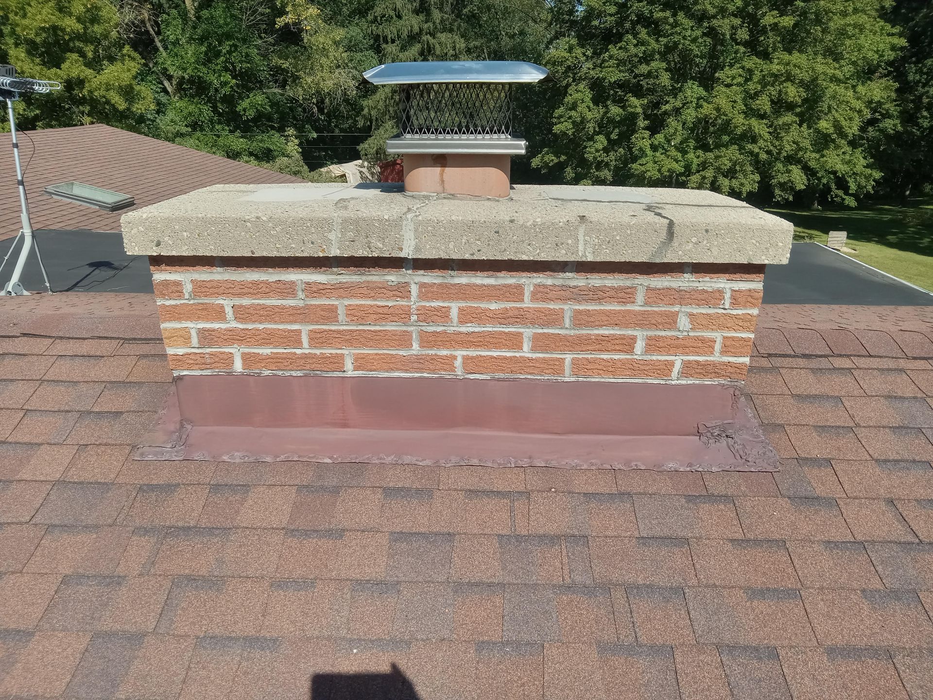 Visible flashing details and crown finishes demonstrate integration of waterproofing best practices.