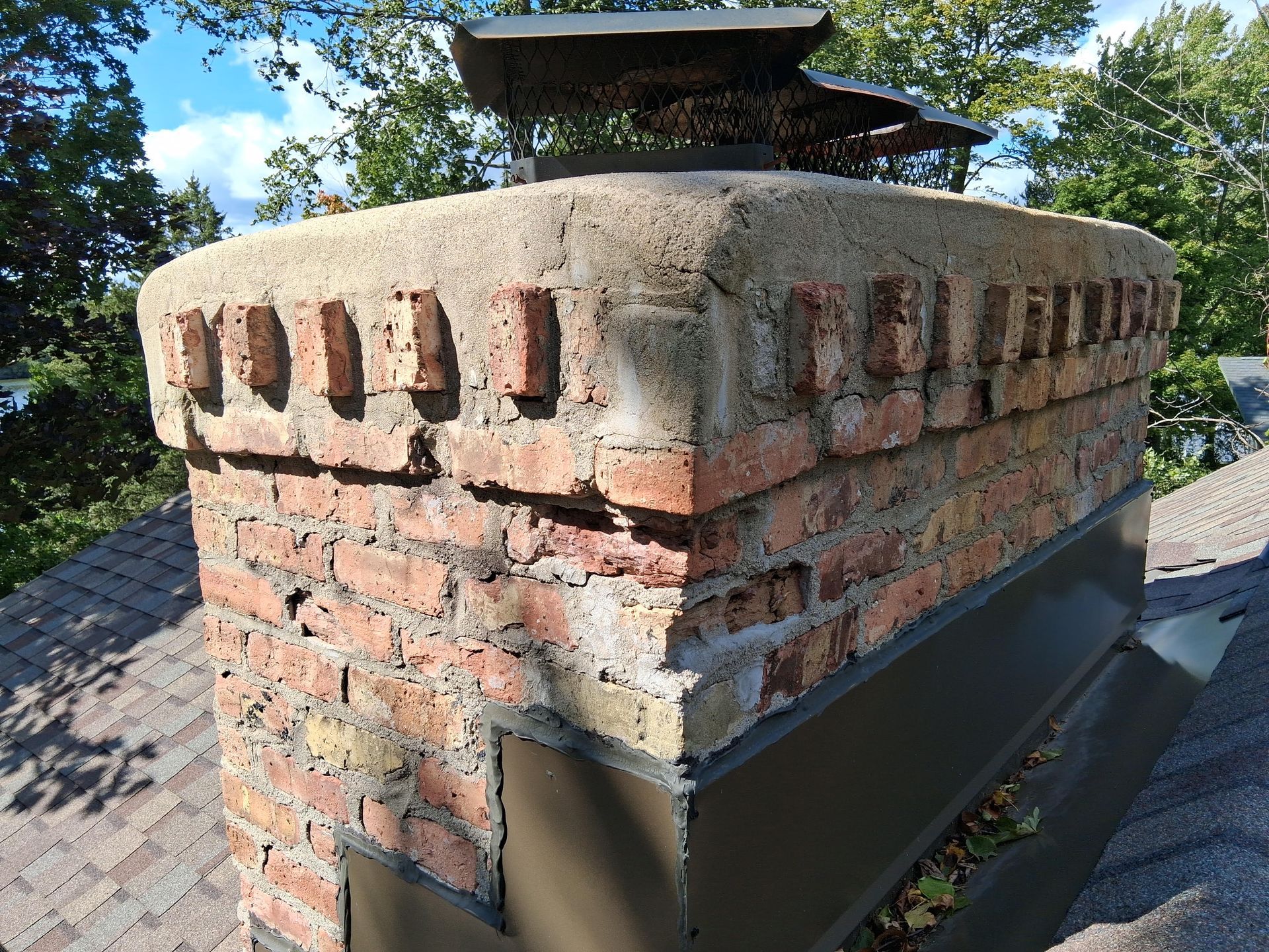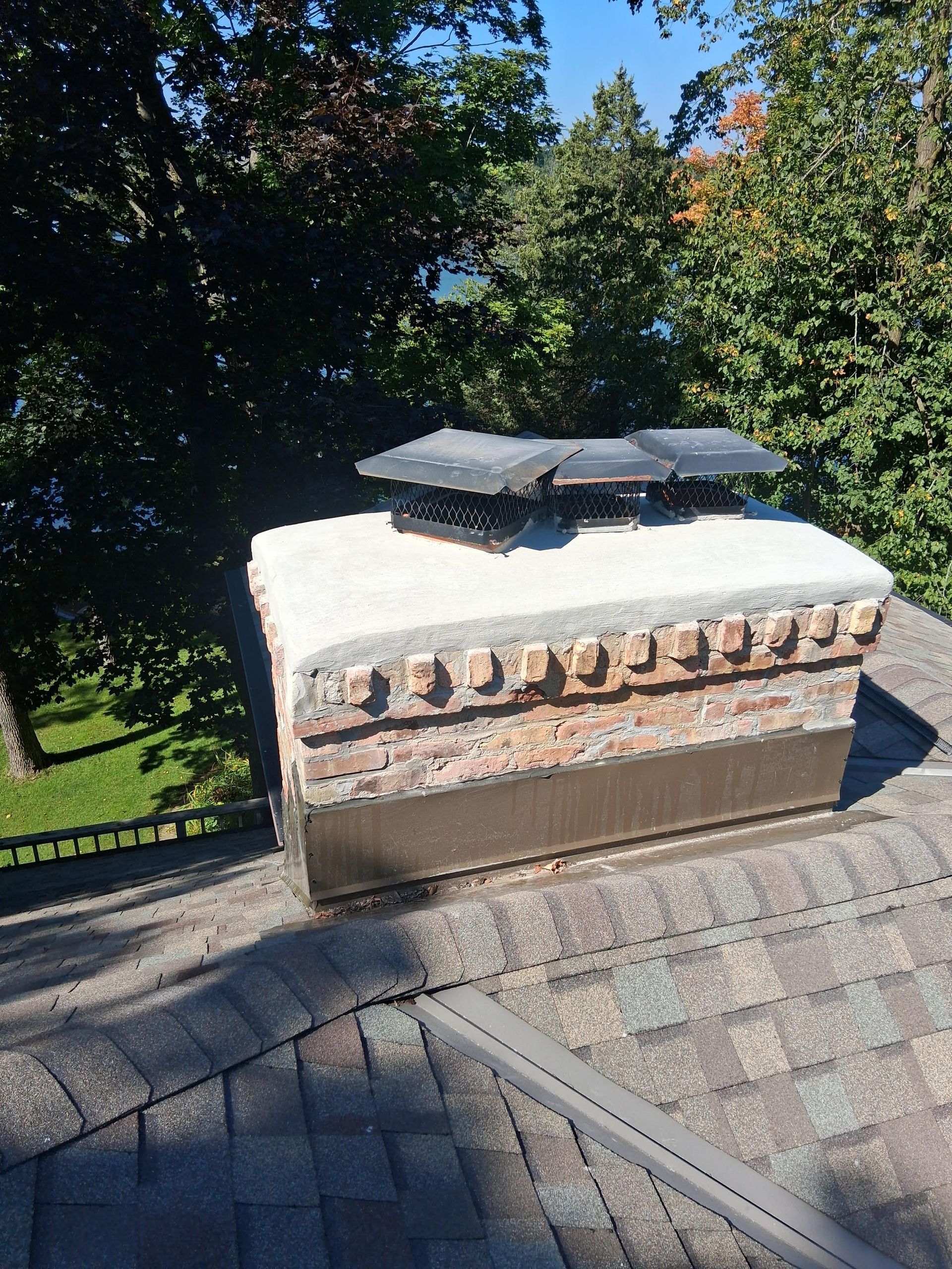 Chimney Rebuild & Liner Upgrade: A century-old home received a full chimney rebuild with a stainless steel liner, crown, and capped termination to restore safe operation.